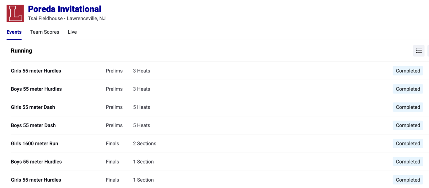 EDIT: Just an additional note that now if you click on “LIVE RESULTS” you get results from an indoor track meet in Lawrenceville on Dec. 14, 2024. Big hurdles race for Sofia Swindell, who’s now a freshman at Penn.!